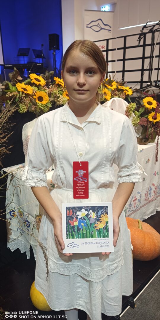 Pjesma „Drveče, drveče zeleno“ učenice 6.b razreda Marije Magdalene Kelemen također je uvrštena u zbirku. Učenica je odjevena u narodnu nošnju pročitala svoju pjesmu „Drveče, drveče zeleno“ na svečanoj priredbi u subotu, 27. rujna. Mladi autori izveli su svoje pjesme u stoljetnom okruženju. Zlatarska festivalska dvorana – Sokolana, izgrađena 1910. godine u secesijskom stilu, ove je godine ponovo otvorila svoja vrata nakon desetogodišnje renovacije i dogradnje