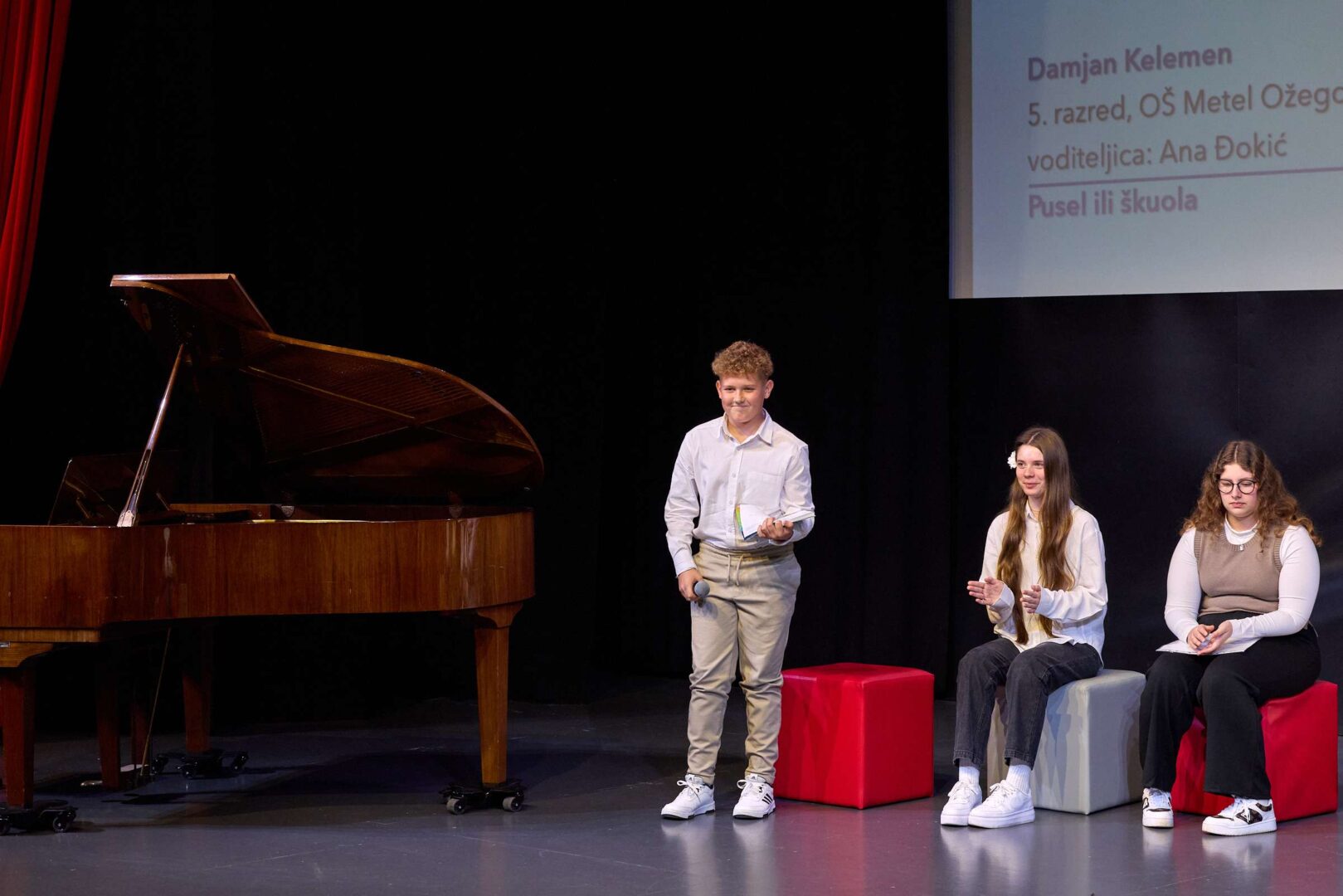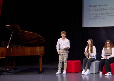 U Svetom Ivanu Zelini održana je 45. Smotra dječjeg kajkavskog pjesništva „Dragutin Domjanić“ pod motom „Poletela bum z vetrom“. Prijavljeno je 339 učeničkih radova iz 74 osnovne škole. Ocjenjivačko povjerenstvo odabralo je 109 radova koju su objavljeni u zbirci. Predložena su 32 rada za javnu izvedbu na završnoj priredbi. Damjan Kelemen, učenik 6. b razreda imao je čast pročitati  svoju pjesmu „Pusel ili škuola“  na smotri održanoj u subotu, 25. listopada. Čestitamo našem učeniku i njegovoj mentorici Ani Đokić na ovom lijepom uspjehu.