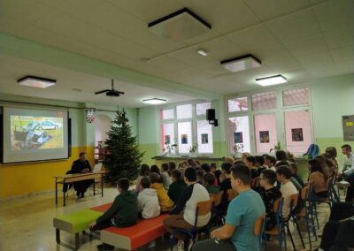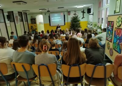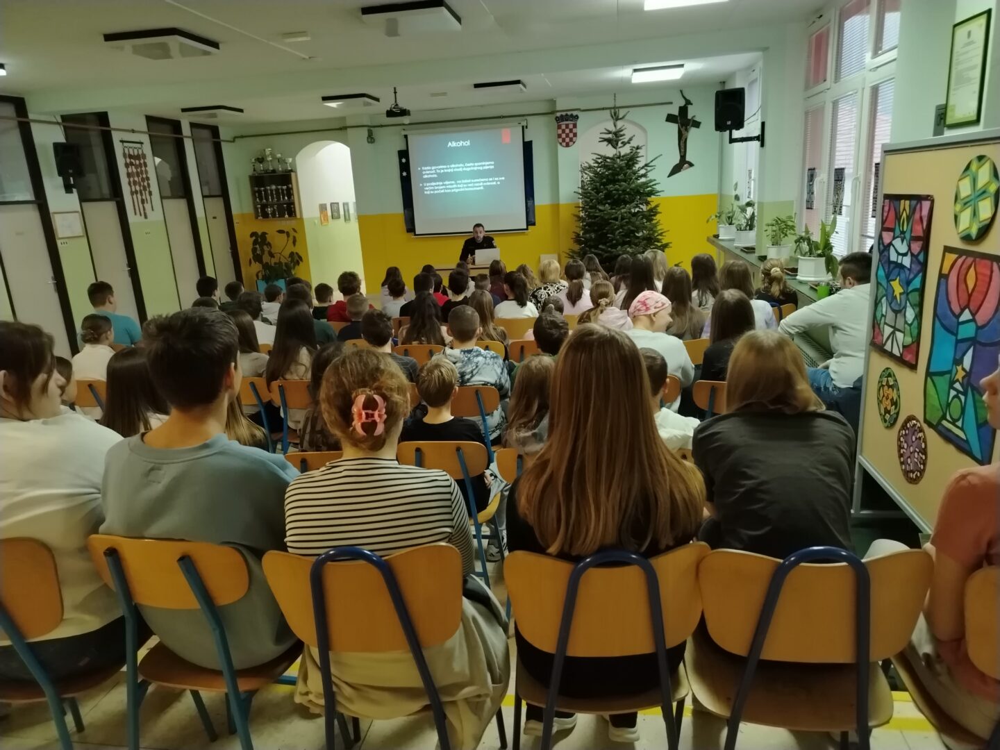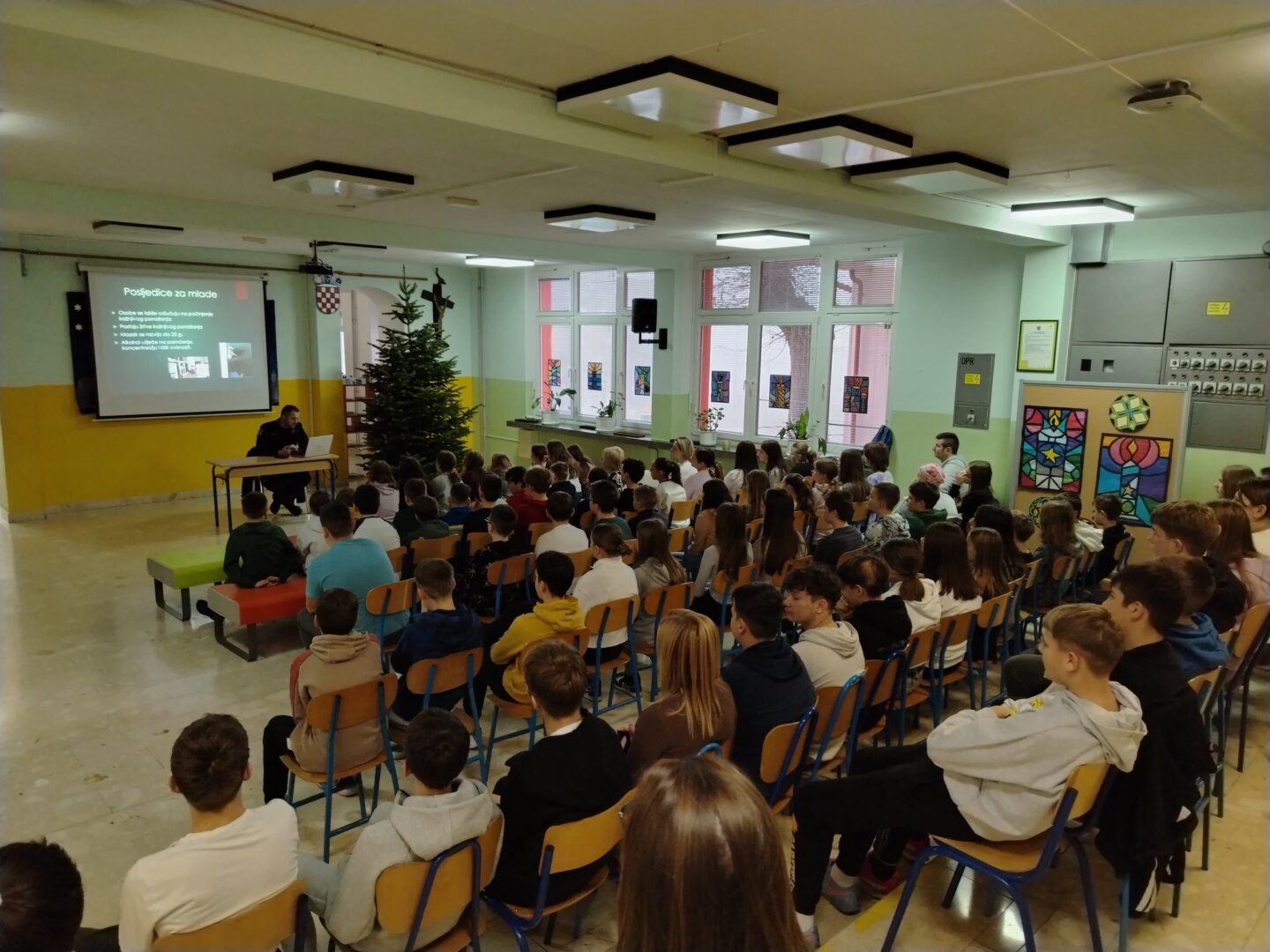 U četvrtak, 4. prosinca 2025. godine, u našoj je školi održano preventivno predavanje za učenike viših razreda. Predavanje je vodio policijski inspektor Marko Šambar, u sklopu nacionalnih aktivnosti usmjerenih na suzbijanje nasilja među djecom i mladima.