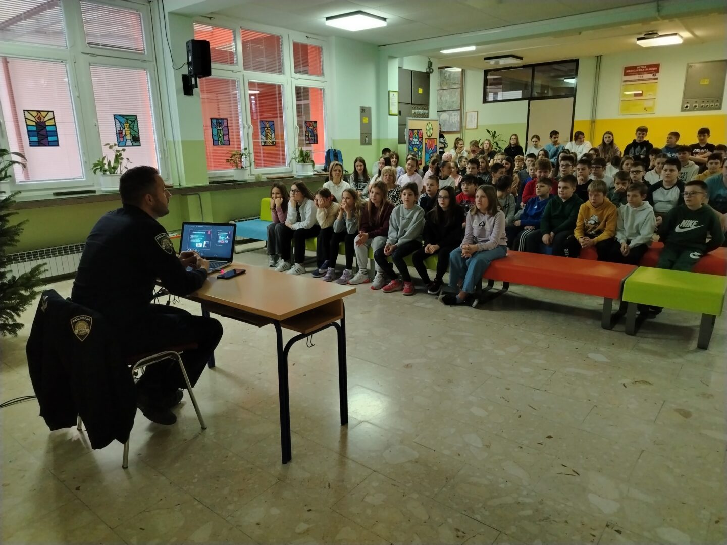 Zahvaljujemo inspektoru Marku Šambaru na korisnom i poučnom predavanju, kao i na stalnoj suradnji u jačanju sigurnosti naše školske zajednice.