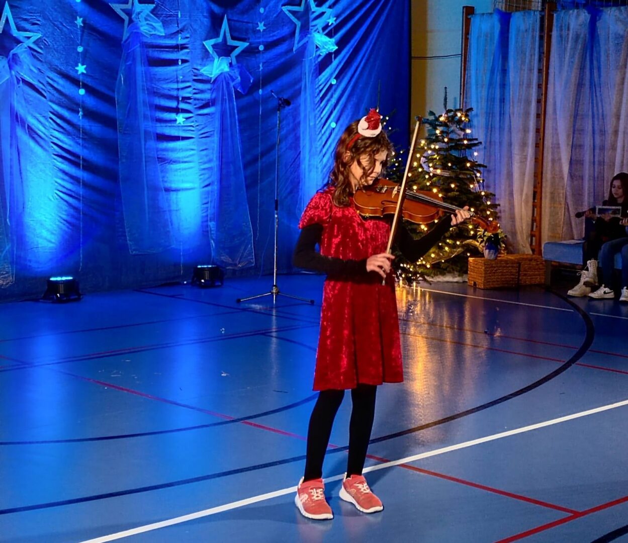 Pjevački zbor nastavio je program pjesmom „Ja letim (Volare)“, a publiku je potom oduševila Dorotea Habunek (5. razred), polaznica Glazbene škole Varaždin, svirajući skladbu „Pahuljice padajte“ na violini.