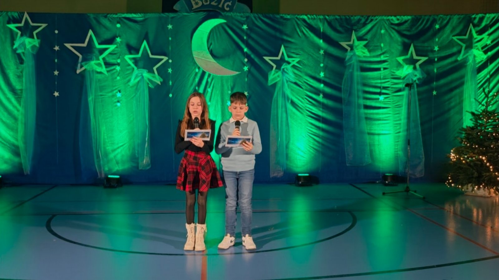 Recitatorski dio programa vodila je učiteljica Gordana Čehok. Petar Peček recitirao je pjesmu „Badnjak“ autorice Jelene Perić, dok su učenici Lovro i Marta (3. razred) izveli pjesmu „Božić“ Barbare Šepac. Učenice 2. razreda – Sofia, Sara, Alina, Dora, Gabriela i Tea – razveselile su publiku recitacijom „Božićna čestitka“ autorice Ive Dužić.
