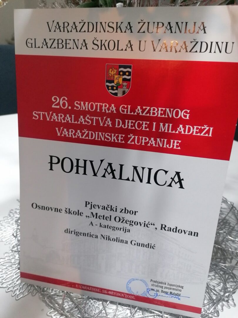 Naši su učenici ostvarili prvi takav uspješan nastup te su za svoju izvedbu nagrađeni pohvalnicom.
