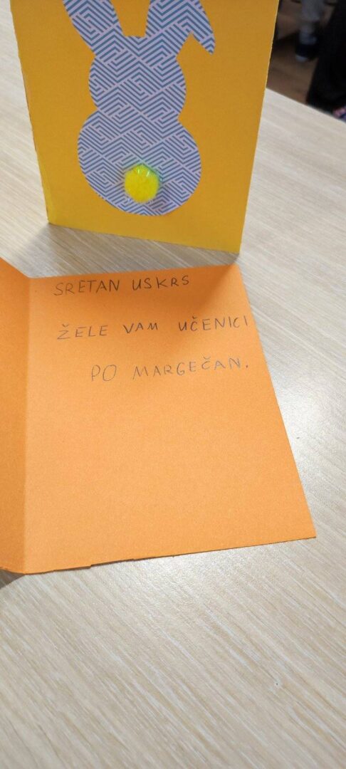 Uoči Uskrsa, učenici iz Margečana sudjelovali su u radionici izrade uskršnjih čestitki u sklopu preventivnog projekta „Razvoj i jačanje socijalnih vještina – gradimo školu prijateljstva“. Kroz ovu aktivnost učenici su pokazali maštovitost, ali i empatiju.