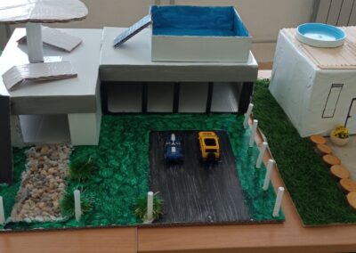 U 6. razredima učenici su izrađivali makete suvremenih kuća. Koristeći papir, drvo, plastiku i kolaž, osmislili su i izradili vlastite arhitektonske ideje. Posebnu su pažnju posvetili detaljima i oblikovanju prostora, pokazujući pritom razumijevanje funkcionalnosti i estetike.