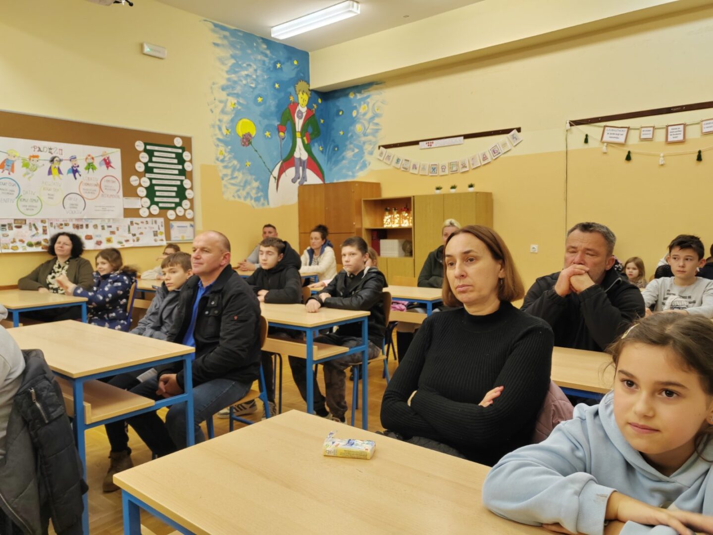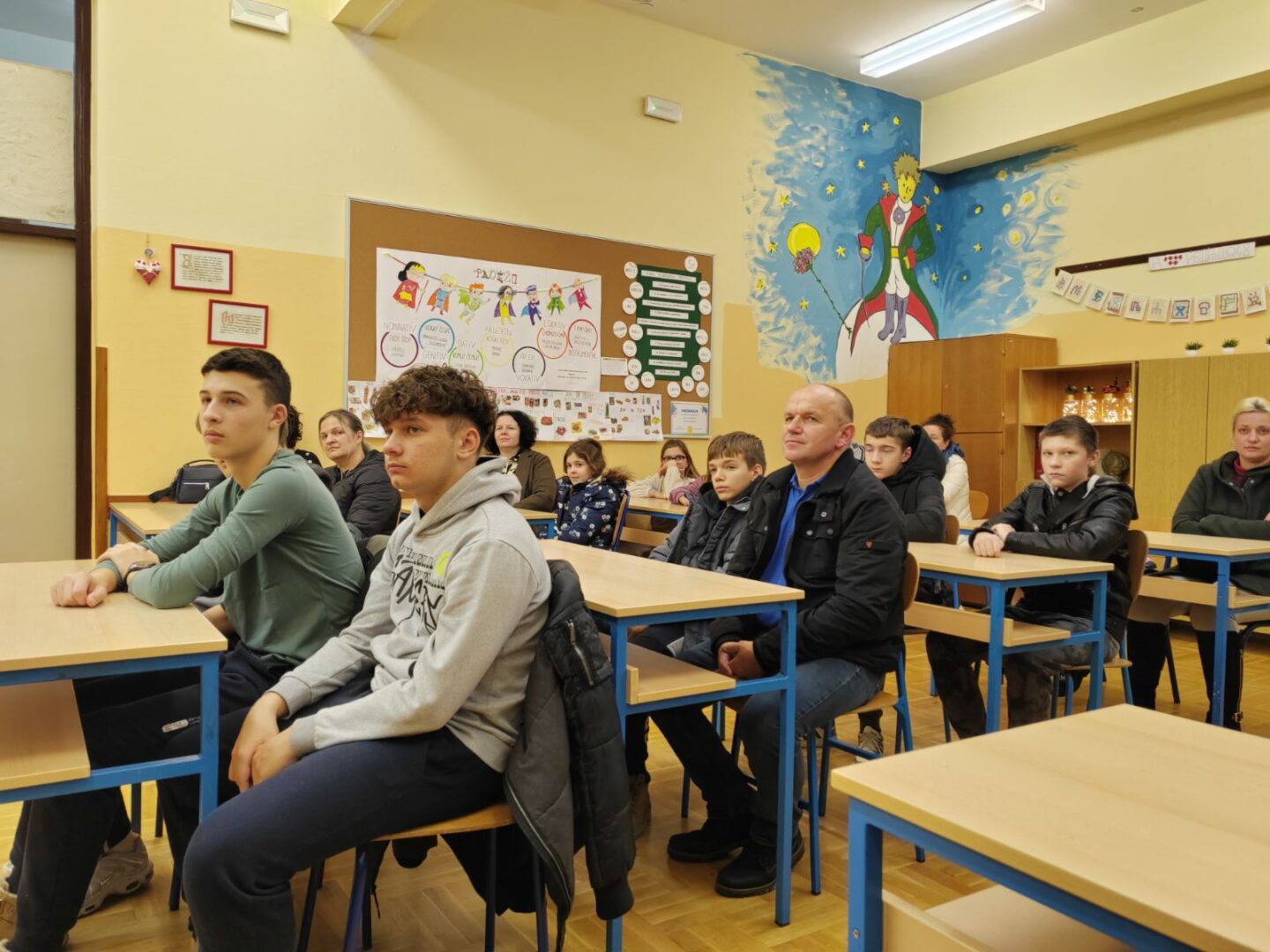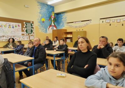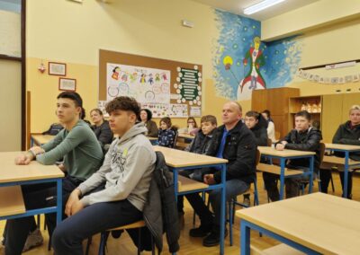 Nakon motivacijskih radionica, izradili smo letke i obavijesti te organizirali sastanak za sve zainteresirane učenike, roditelje i predstavnike DPGiNO „Lompuš“. Sastanak je održan 26. studenog 2025. godine, uz sudjelovanje predsjednika društva g. Miljenka Grudičeka i učitelja glazbenog odgoja Franje Plantaka, koji ima dugogodišnje iskustvo u radu s tamburaškim sastavima. Odaziv je bio iznimno velik i iznad očekivanja.