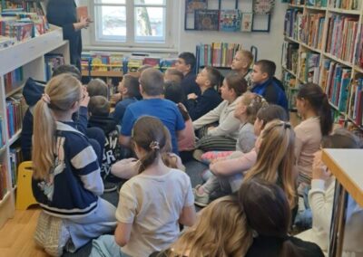 Šetnju su potom nastavili kroz park Vatroslava Jagića do varaždinske dječje knjižnice. U pratnji knjižničarke razgledali su prostor knjižnice, upoznali pravila posudbe knjiga te poslušali priču „Čemu služe zvijezde“, koja ih se posebno dojmila.