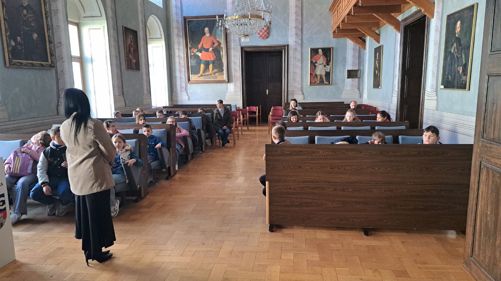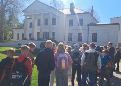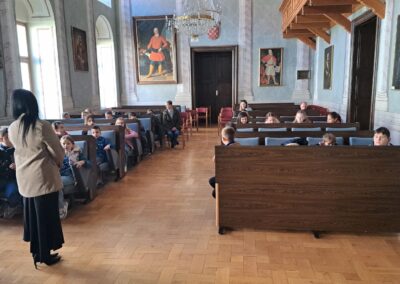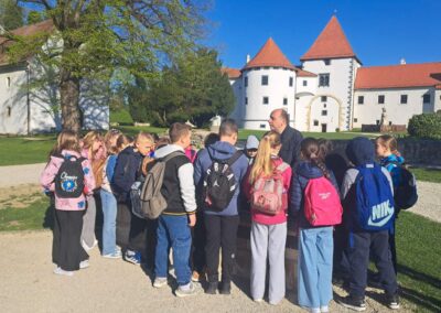 Terensku nastavu započeli su posjetom Županijskoj palači. U pratnji stručne suradnice iz Turističke zajednice Varaždinske županije obišli su prostor palače te razgledali Centar za posjetitelje, gdje su upoznali kulturnu i prirodnu baštinu naše županije.